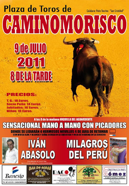 Se anuncia un mano a mano con picadores en la plaza de toros de Caminomorisco entre la peruana Milagros Sanchez ''Milagros del Perú'' y el novillero Ivan Abasolo de Orduña. El ganado a lidiarse será de Jara de Rematar.